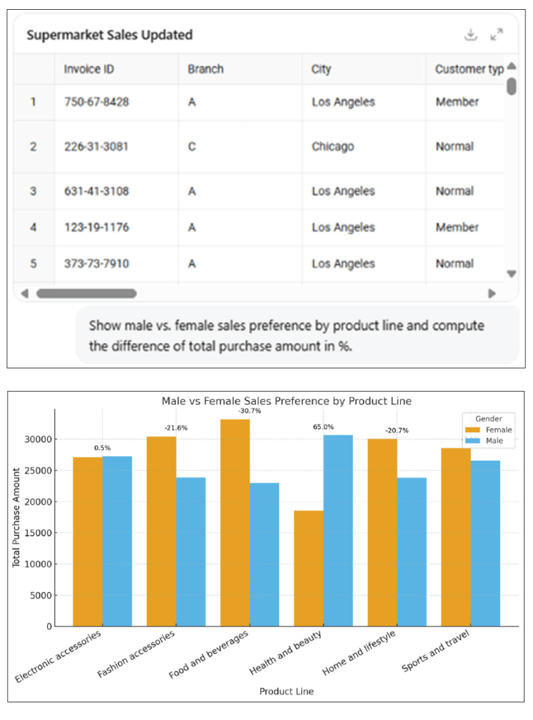 Continuing with our Supermarket Sales file, we can use AI tools to recognize patterns such as: