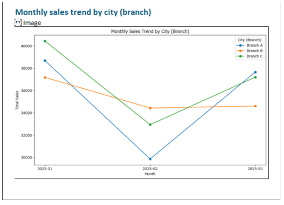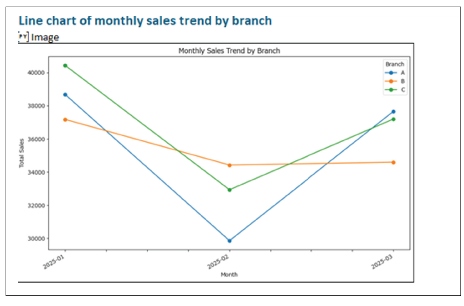 Here, a line chart is provided for visualizing monthly Sales trends by Branch.
