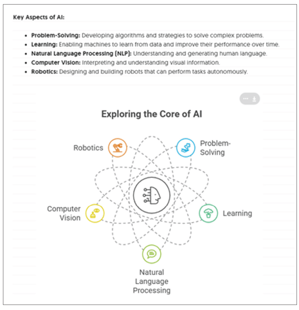 “Paste the key aspects of AI and generate the visuals that can be used in PPT slides.”