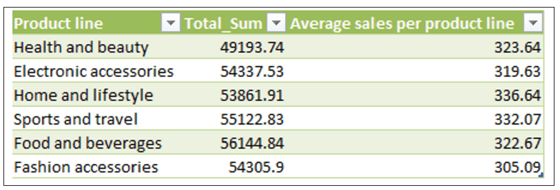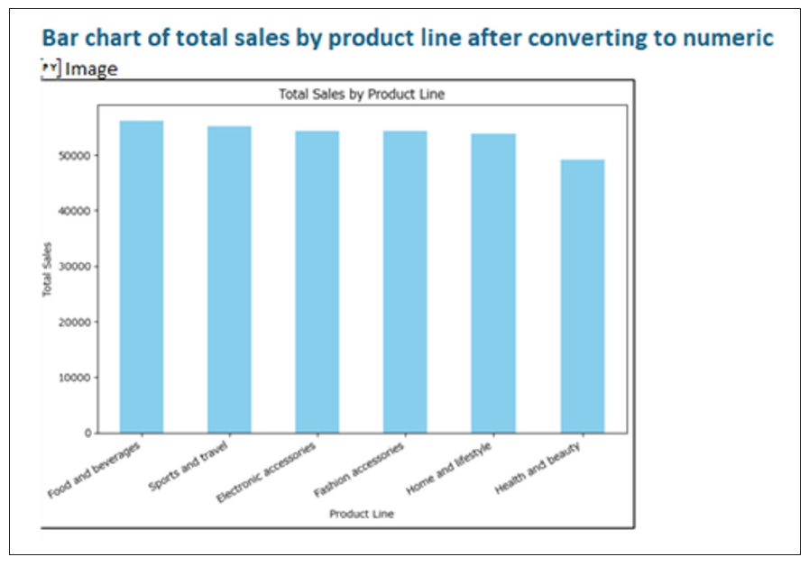 In this case, a bar chart has been created to show the Total Sales for each Product line.