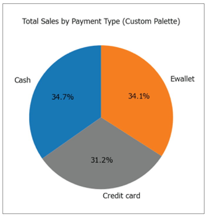 Here, a pie chart has been created to show the portion of payments made by cash: