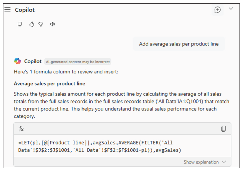 For documentation — and possibly so that we understand precisely what has occurred — we can even ask Copilot to explain the current query:
