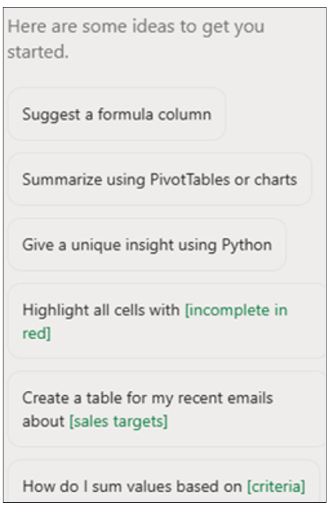 This means that Copilot can automatically write formulas and new helper columns from a natural-language request. It can also generate Python code (e.g., using Pandas/Matplotlib) directly in the grid for grouping, charts, outlier flags, and so on. For example, we could ask: